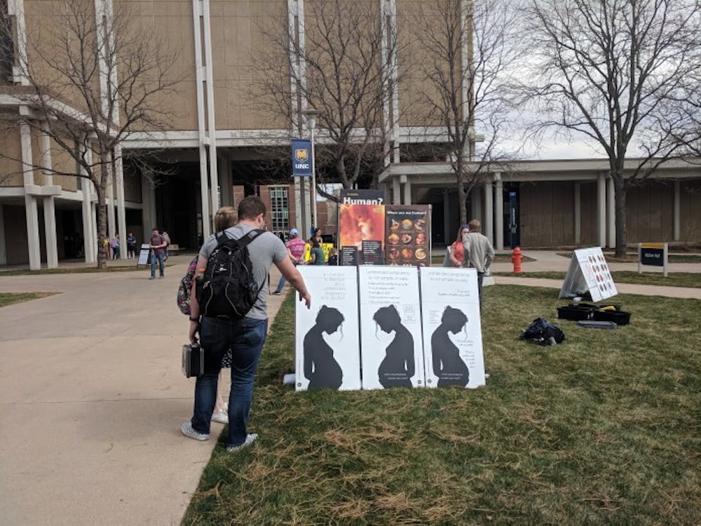 Grace Fontenot, a representative from Justice For All, said they intended to start a dialogue on campus about unplanned pregnancy and abortion, specifically around the topic of when a fetus is considered a human. The Greeley Pregnancy Resource Center joined the demonstration to offer free, Christian-based resources for unplanned pregnancies.